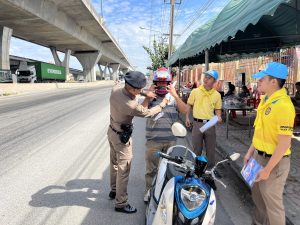 บางพลีน้อย พร้อมข้าราชการชุดจิตอาสา สภ.บางพลีน้อย ร่วมทำกิจกรรมจิตอาสาจราจร รณรงค์การขับขี่ปลอดภัย