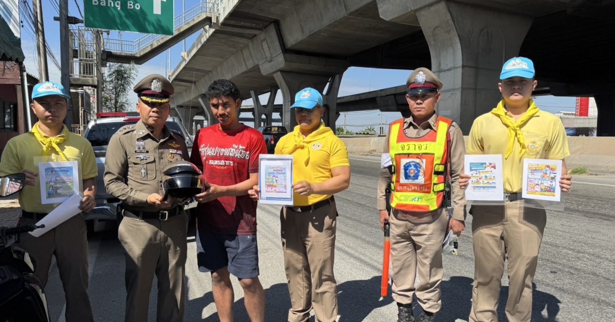 บางพลีน้อย พร้อมข้าราชการชุดจิตอาสา สภ.บางพลีน้อย ร่วมทำกิจกรรมจิตอาสาจราจร รณรงค์การขับขี่ปลอดภัย