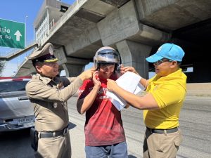 สวมหมวกนิรภัย เพื่อลดอุบัติเหตุจราจรทางบก ในช่วงเทศกาลปีใหม่ 2568 โดยมอบหมวกนิรภัยที่ได้รับจากสำนักงานตำรวจแห่งชาติ ให้กับพี่น้องประชาชนที่ขับขี่รถจักรยานยนต์ กำชับ กวดขัน ประชาสัมพันธ์ การสวมหมวกนิรภัยและการปฏิบัติตามกฎจราจร