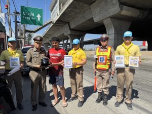 บางพลีน้อย พร้อมข้าราชการชุดจิตอาสา สภ.บางพลีน้อย ร่วมทำกิจกรรมจิตอาสาจราจร รณรงค์การขับขี่ปลอดภัย