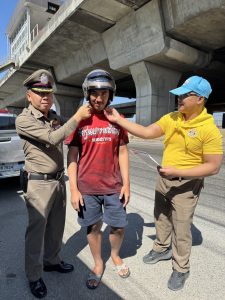 สวมหมวกนิรภัย เพื่อลดอุบัติเหตุจราจรทางบก ในช่วงเทศกาลปีใหม่ 2568 โดยมอบหมวกนิรภัยที่ได้รับจากสำนักงานตำรวจแห่งชาติ ให้กับพี่น้องประชาชนที่ขับขี่รถจักรยานยนต์ กำชับ กวดขัน ประชาสัมพันธ์ การสวมหมวกนิรภัยและการปฏิบัติตามกฎจราจร