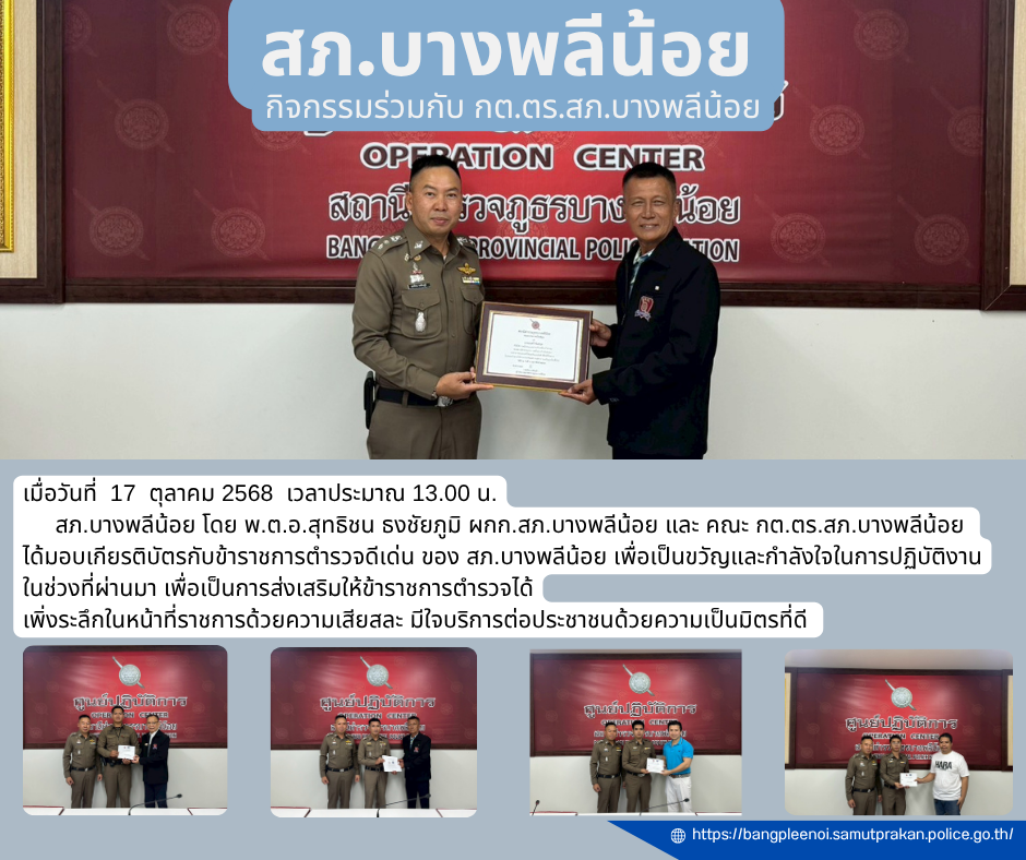 มอบเกียรติบัตรกับข้าราชการตำรวจดีเด่น ของ สภ.บางพลีน้อย