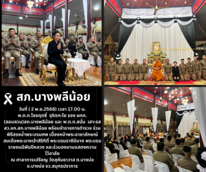 สว.อก.สภ.บางพลีน้อย พร้อมข้าราชการตำรวจ ร่วมพิธีสรงน้ำพระบรมศพ เบื้องหน้าพระฉายาลักษณ์สมเด็จพระนางเจ้าสิริกิติ์ พระบรมราชินีนาถ พระบรมราชชนนีพันปีหลวง และร่วมลงนามแสดงความไว้อาลัย