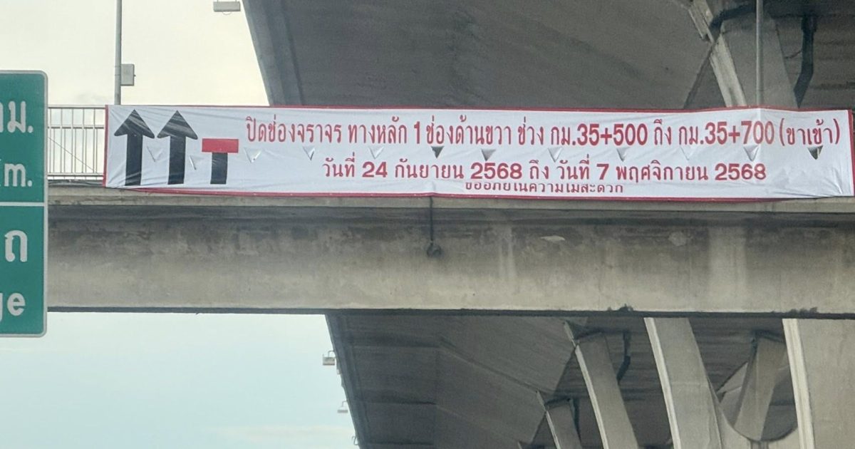 แจ้งประชาสัมพันธ์ ผู้รับเหมา ก่อสร้างสะพานกลับรถ กม.35+500 จะทำการปิดถนนช่องทางขวา แต่ยังคงเหลือใช้ 2 ช่องทาง ของทางด่วน ทั้งขาเข้า และขาออก กรุงเทพ โดยเริ่มปิดการจราจร ตั้งแต่ วันที่ 24 กันยายน 2568 ถึง 7 พฤศจิกายน 2568 ขออภัยในความไม่สะดวก จึงแจ้งมาให้ทราบ เพื่อวางแผนการเดินทาง ในการใช้รถ ให้ทราบโดยทั่วกัน
