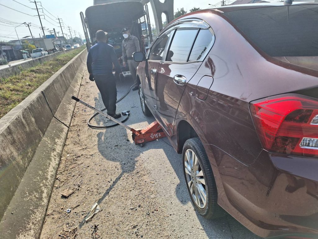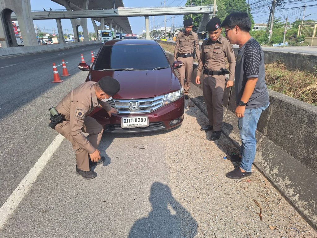 ขณะที่ปฏิบัติหน้าที่จราจร ได้รับแจ้งเหตุจากศูนย์สื่อสารวิทยุ สภ.บางพลีน้อย ว่ามีเหตุขอความช่วยเหลือรถยนต์ยางแตก ตรงข้ามตลาดนำไท กม.ที่ 34+400 ถนนเทพรัตน (บางนา-ตราด) ขาเข้ามุ่งหน้า กทม.ฯ ร.ต.ต.แดน ส่วยสม ขับรถยนต์สายตรวจจราจรออกตรวจสอบ จึงพบรถยนต์ส่วนบุคคล ทะเบียน 2กก8280 กรุงเทพมหานคร จอดอยู่ชิดขอบทางด้านซ้าย บนถนนเทพรัตน (บางนา-ตราด) ขาเข้า กทม.ฯ และอาจจะเกิดอุบัติเหตุ จึงได้ทำการเข้าช่วยเหลือนำกรวยยางมาวางเพื่อป้องกันเหตุรถชนท้าย และประสานช่างดำเนินการช่วยเหลือต่อไป