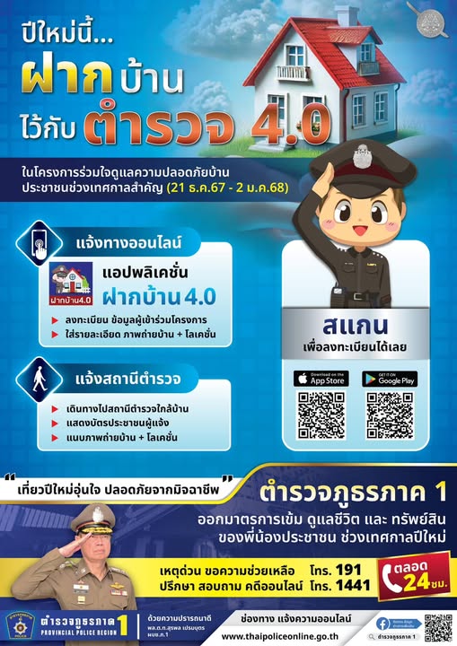 ฝากบ้านกับตำรวจ ในโครงการร่วมใจดูแลความปลอดภัยบ้านประชาชนช่วงเทศกาลสำคัญ (ฝากบ้าน 4.0 )